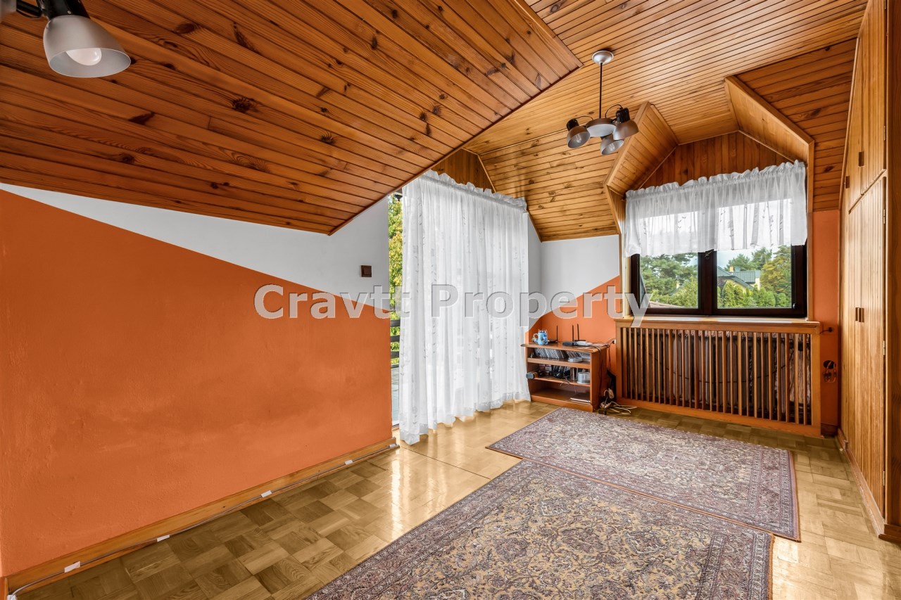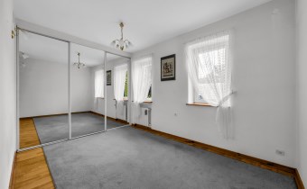 Dom, okna na cztery strony świata. Bardzo dużo zieleni, zagospodarowana, zadbana działka. W sąsiedztwie zabudowa jednorodzinna. W całym domu drewniane parkiety.