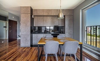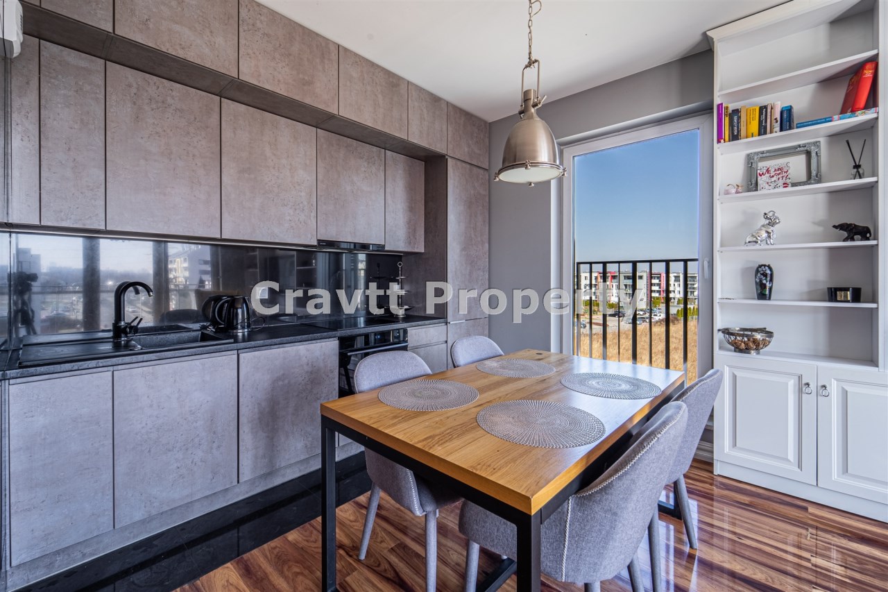 Atutami nieruchomości są duże okna na trzy strony świata – bez efektu „okno w okno”, rozległy widok na panoramę miasta, duży balkon – 12 m², liczne zabudowy zapewniające dużo miejsca do przechowywania,