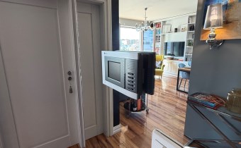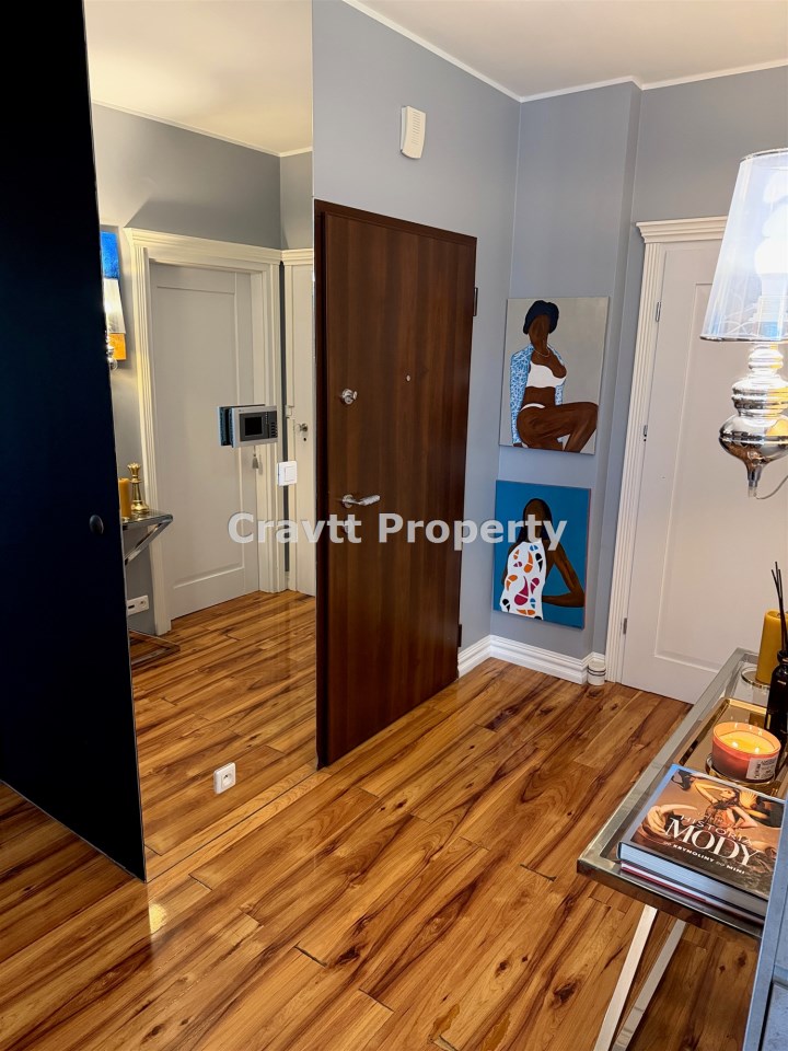 Apartament przeszedł odświeżenie i nie wymaga żadnych nakładów finansowych – jest gotowy do wprowadzenia. Z salonu oraz przestronnego balkonu (12 m²) rozpościera się widok na panoramę Warszawy, w tym na Pałac Kultury i Nauki.