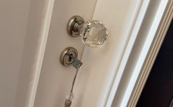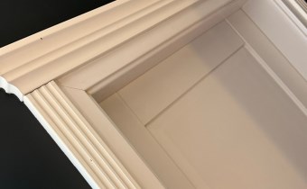 kuchnia na wymiar z pełnym zestawem AGD (płyta indukcyjna, piekarnik z funkcją mikrofali, lodówko‑zamrażarka, okap z wyciągiem, systemy cargo), łazienka z zabudową stolarską, dużym lustrem i pojemnymi szafkami, garderoba z szafami do sufitu, lustra na wymiar od podłogi do sufitu, drewniane drzwi z ozdobnymi koronami.