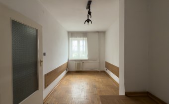 Mieszkanie do generalnego remontu, na podłodze znajduję się parkiet, widok na park.