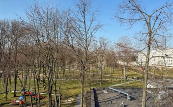 Mieszkanie do generalnego remontu, na podłodze znajduję się parkiet, widok na park.