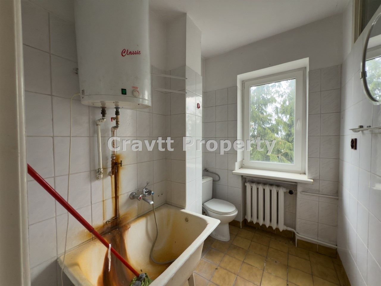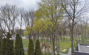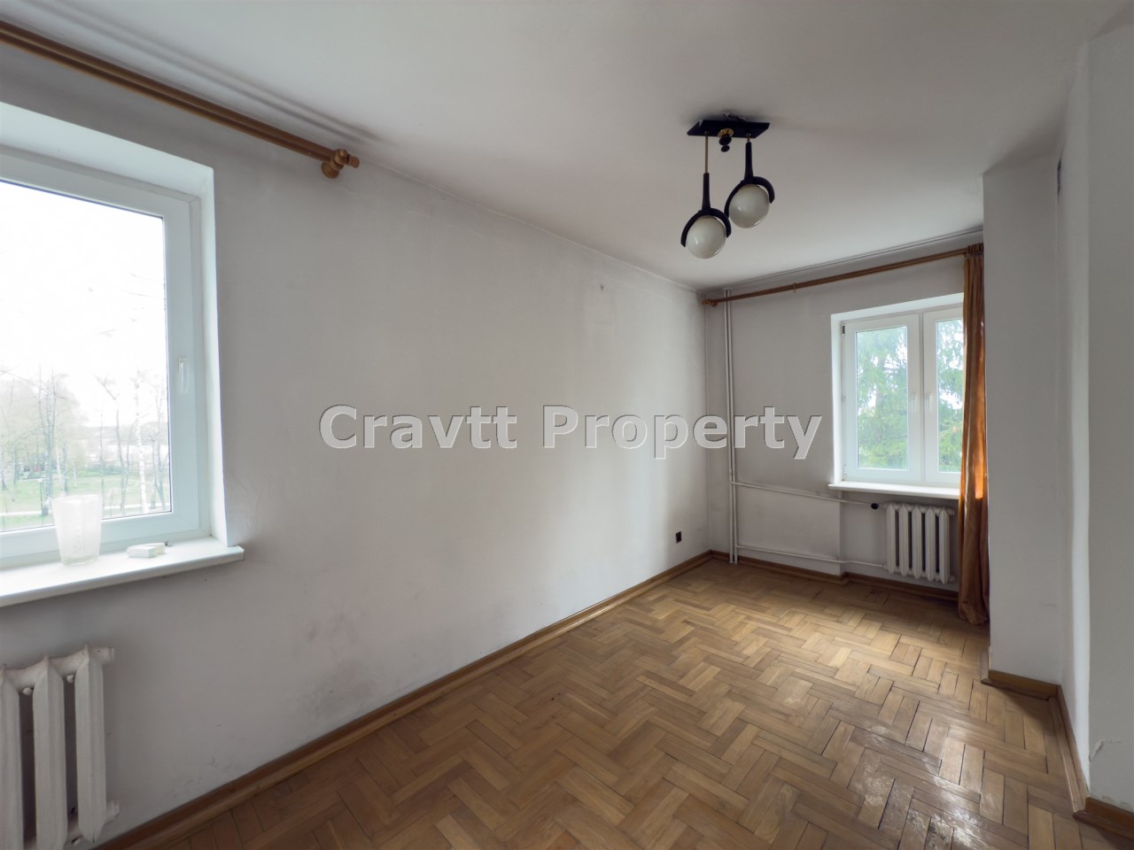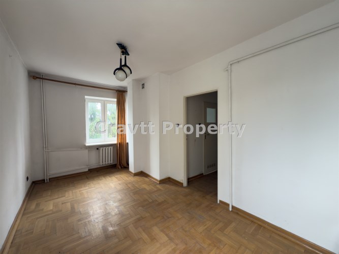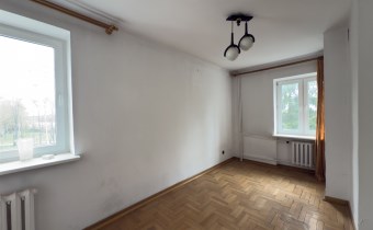 Mieszkanie do generalnego remontu, na podłodze znajduję się parkiet, widok na park.