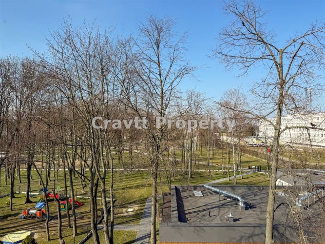 Mieszkanie do generalnego remontu, na podłodze znajduję się parkiet, widok na park.