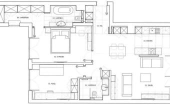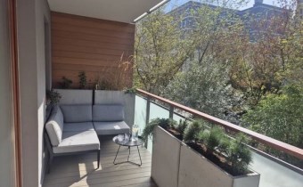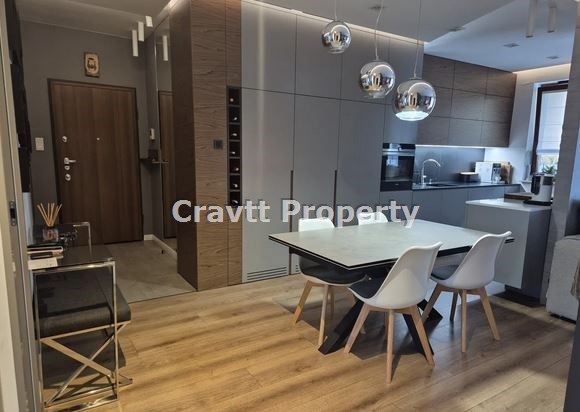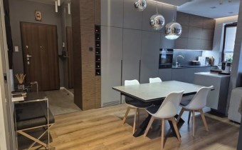 - przestronnego salonu z kuchnią i jadalnią (40 m²) z wyjściem na loggięWnętrze wykończone w wysokim standardzie z użyciem materiałów bardzo dobrej jakości: meble na wymiar, pełne wyposażenie AGD Siemens.