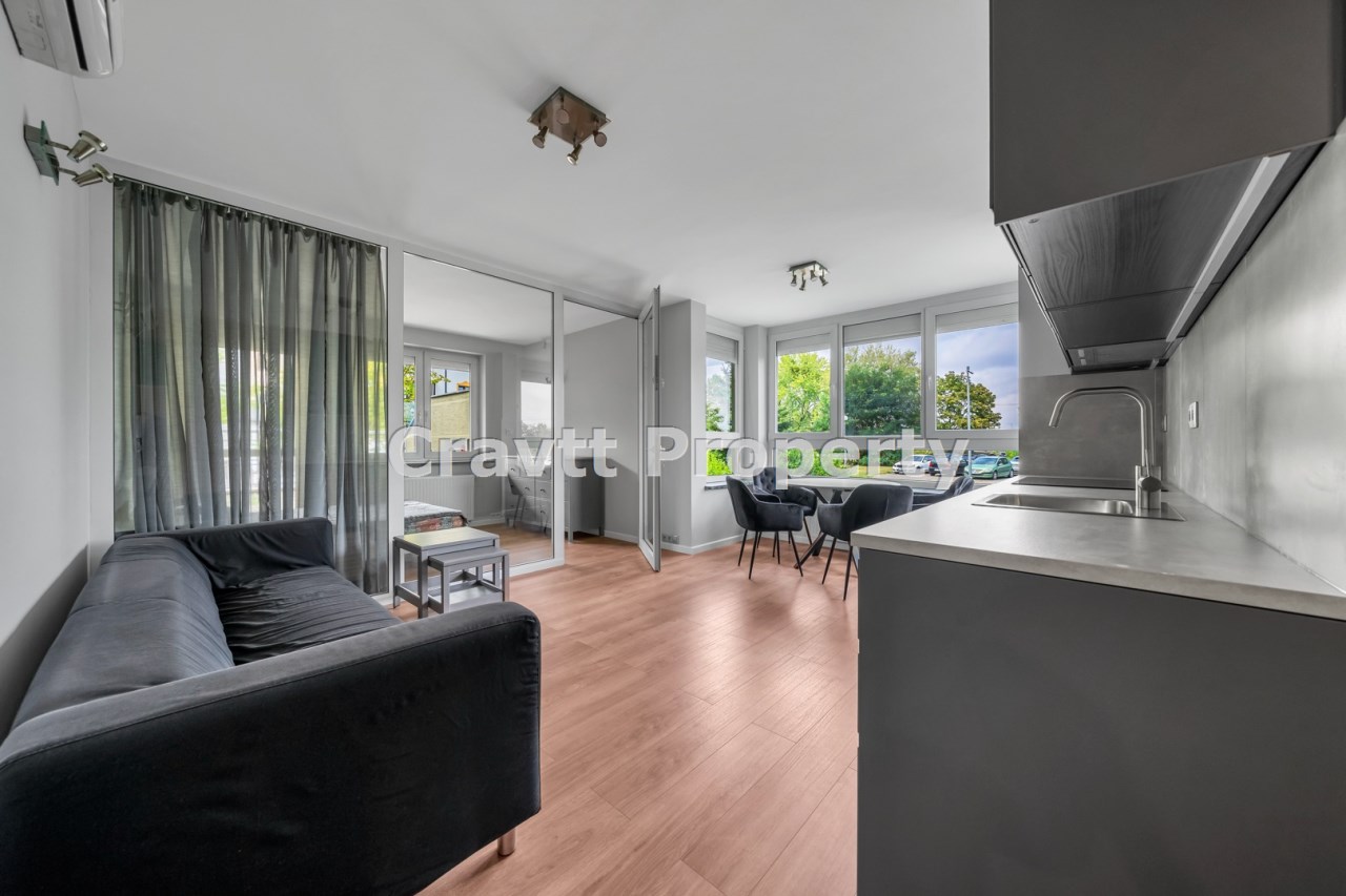 Mieszkanie w bardzo dobrej lokalizacji, usytuowane na wysokim parterze, w niskim, trzy piętrowym, nowoczesnym budynku z cegły.